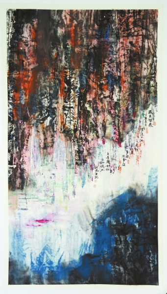 竹君亦然。不过他是把西画注重色的表现,巧妙地运用在对画作色彩的处理上。中国画传统用色讲究清雅内在,色不碍墨。竹君反之,采用厚重外在的色进行处理。在其色彩灵动的擦染之间,色彩在其笔墨山水建构的空灵处游走。亦如书法笔法之飞白,其力度,其色的质感,鲜明地呈现出山峦峰石的有形质感,却又不失其笔墨的写意。回眸而视,这些色无不显现出其灵动多变的形态,而使得笔墨互不相碍,变化而交融。
