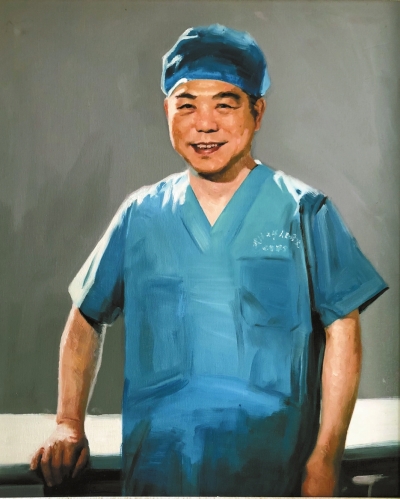 医生朋友唐其柱技术精湛,医德高尚,向斌就为他创作了一幅题为“人民的好医生唐其柱”的肖像画,表达自己的感佩赞赏之情。