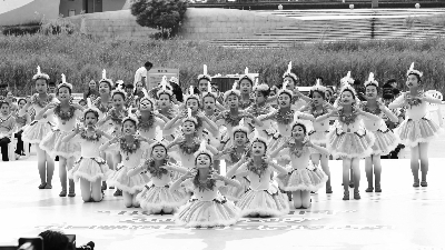 5月15日,由中国文联、中国舞蹈家协会、山东省文联、山东省舞蹈家协会组织的“我和我的祖国”——2019“5·15”中国舞蹈日山东展演活动在济南举办,来自山东省的9支表演队伍参加了此次展演,呈现了芭蕾舞、民族舞、啦啦操等丰富多彩的内容和形式。图为济南市妇女儿童活动中心的孩子们表演舞蹈《快乐的布谷》。本报驻山东记者 苏 锐 摄影报道