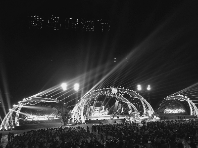 图为开幕式现场,300架无人机在空中摆出“青岛啤酒节”字样。