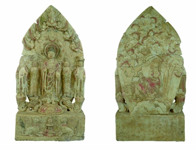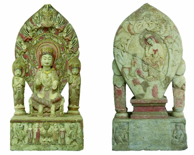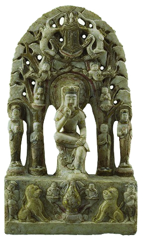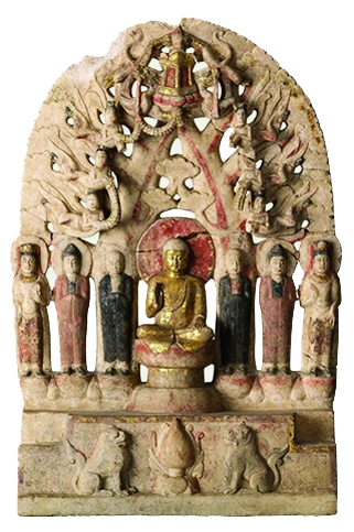 佛造像则以雕塑的形式凝聚了美术的多门类精华。以此次展出的邺城佛造像为例,既有北魏时期以“褒衣博带,秀骨清相”为特点的飘逸潇洒的造像,也有北齐时期以“曹衣出水”的薄衣贴体温润内敛的造像,更有精雕细琢、极具地域特色和风貌的透雕“龙树背屏”式造像,展示出多元文化交融下的雕塑新风。“弥勒七尊像”和“菩萨坐像”利用了白色大理石温润洁白、质地柔软的特点,运用娴熟的镂空雕刻技术;“弟子立像”和“菩萨三尊像”的雕刻风格明显有别于白石造像,突出了造像服饰线条的变化;圆雕“弥勒菩萨头像”等则尽显石雕之美……何利群说,根据考古,邺城佛造像可以分为4个阶段,而每一阶段都对当时的艺术审美提出了新的标准。