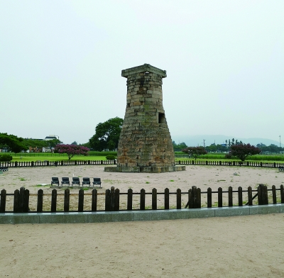 四、瞻星台。瞻星台1995年被列入世界文化遗产名录。从古至今,人们一直都没有停止对于宇宙的探索。在古代,由于科学技术的落后,人们对于世界的认知较少,夜晚空中闪烁的星光就成为人们了解宇宙的主要观察和研究对象。当时,人们还用星宿来占卜个人乃至国家的吉凶。古时的天文学家建造了各种各样的天文台。庆州瞻星台建于新罗27代王善德女王(公元632年—647年)时期。瞻星台呈圆柱形,高9.17米,由362块30厘米大小的长方形石块分27层堆砌而成,基座的石块每边长5.35米。距底部4.16米处有一扇门,呈正方形,边长1米,门下方还遗留着放置梯子的痕迹。内部从底部至第12层都填满了泥土,在瞻星台第19层、20层和25层、26层石上各置有呈井字形的长石条,石条两端伸向墙外。当时,人们通过星空测定春分、秋分、冬至、夏至等二十四节气,而井字石估计是用来指定东西南北方位的基准。建造瞻星台用了362块石块,象征着阴历年一年的天数。