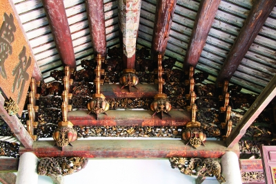 己略黄公祠木雕立意新颖,充满着匠人们的奇思妙想,如《路路连科》以谐音立意,由鹭鸟、莲花、芦苇、蝌蚪等组成,既指考场接连登科,也泛指事业顺利;如《李铁拐打赌》,寓意着无邪与吉祥;如《龙吻八仙》,则有驱邪逐魅、降水灭火的含义;如《龙吻三霄》,又为财丁兴旺的祝愿……令人望之有琳琅满目之感。更难能可贵的是,通过这些木雕作品,观者一方面可以看到手工与艺术的某种完美平衡——既“精”且“美”;另一方面又可以从中体悟到潮州木雕“不止于艺”的内涵与追求——那是一种根植于本土诉求,成教化、助人伦的文化呈现。