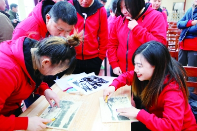 12月6日,“版画接龙”文化实践活动在北京市朝阳区金盏乡东窑村举办。清华大学美术学院绘画系副系主任、博士生导师文中言带领400名当地居民现场制作木版年画。授课老师从材料准备、用刀方法、用色及拓印方法入手展开详细讲解,手把手指导居民们完成一幅套色的木版年画。