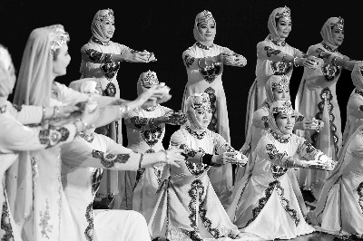 图为奥运村群众表演的《盖碗茶送亲人》。本报记者 卢 旭 摄
